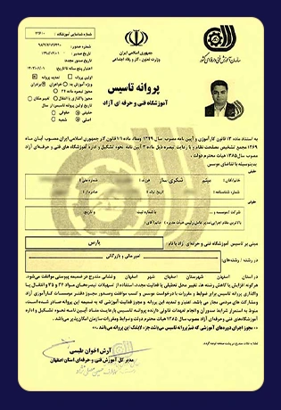مجوز سازمان فنی‌و‌حرفه‌ای استان اصفهان