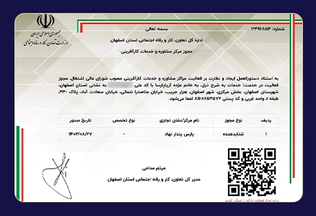 مجوز مرکز مشاوره تخصصی خدمات در اصفهان