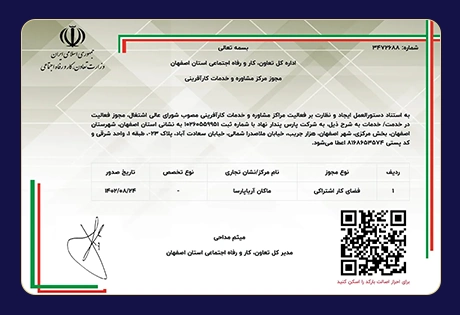 مجوز مرکز مشاوره فضای کار اشتراکی در اصفهان