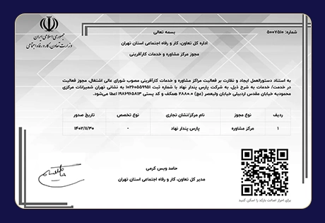 مجوز مرکز مشاوره و خدمات کارآفرینی در تهران