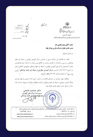 مجوز مرکز آموزش مهارتی و حرفه‌ای علوم پزشکی