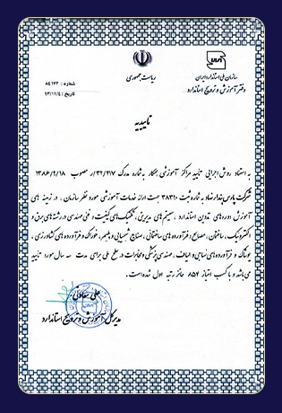 مجوز برگزاری دوره‌های اداره کل استاندارد